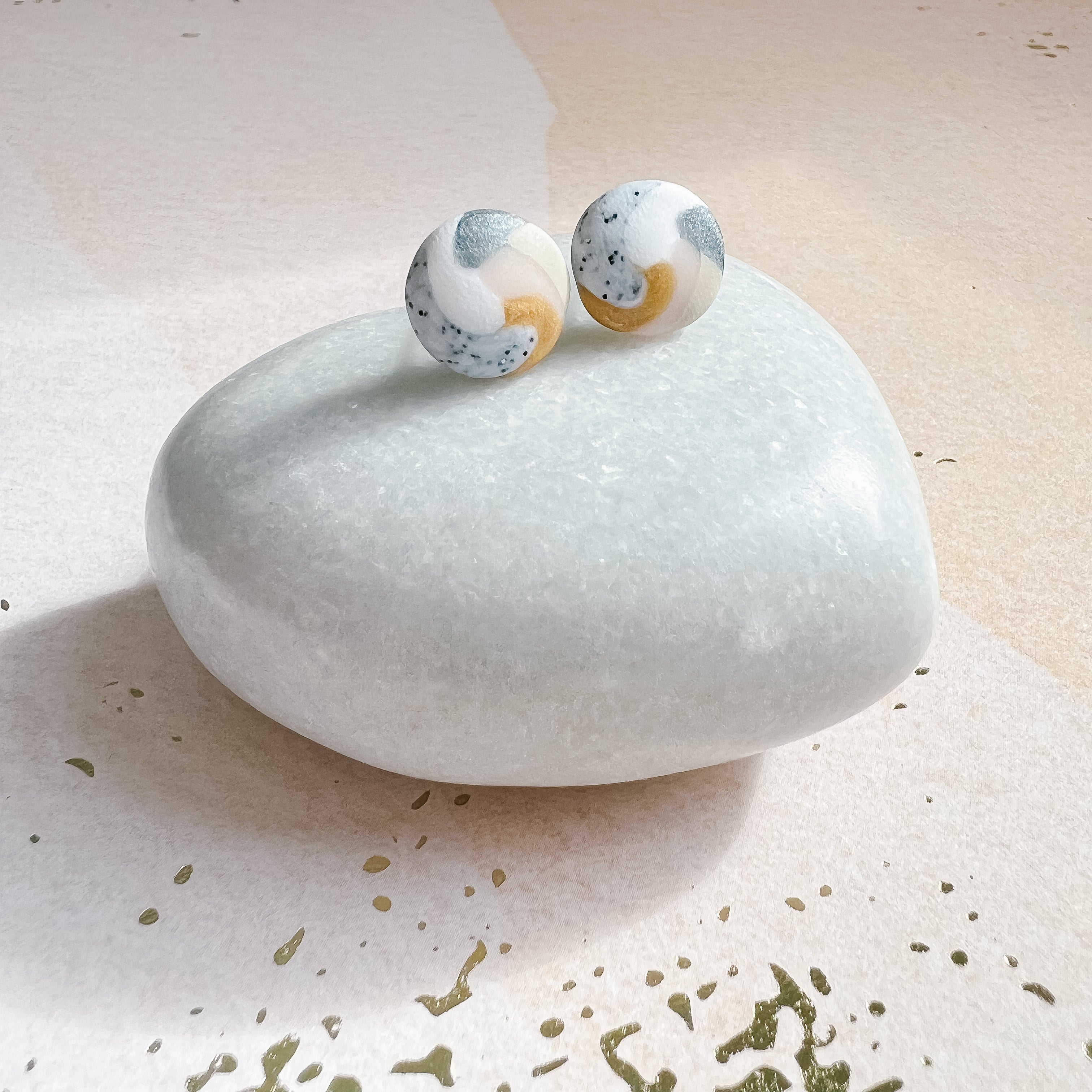 Jewelry is made using polymer clay and high quality, nickel-free metals such as iron, gold plated stainless steel, gold plated brass, vermeil gold and 925 sterling silver.